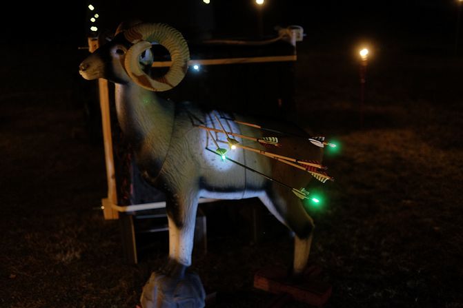 Es war eine beeindruckende Erfahrung, im Dunkeln zu schießen. Jeder musste sich auf das Intuitive verlassen, da mit dem Blankbogen ohne Visier geschossen wurde. Durch die geringe Fackelbeleuchtung an der Startlinie war es schwierig, die Leitfeder zu identifizieren und die Nocke an die Bogensehne zu führen. Nach dem Einnocken konzentrierte sich jeder auf das Tierziel, da niemand es verfehlen wollte. Trotz aller Anstrengungen flogen einige Pfeile an den Tieren vorbei.