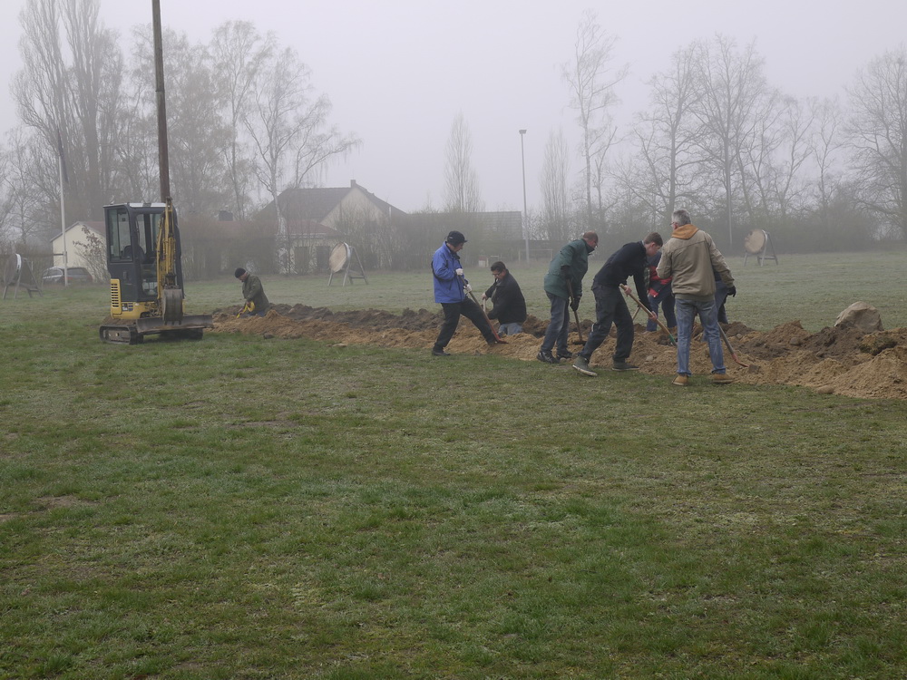 Am 6. April 2019 wurde mit vereinten Kräften ein neues Stromkabel zum Bogenheim verlegt. Außerdem wurden die neuen Scheibenständer gestrichen um für die Freiluftsaison und die Kreismeisterschaft gerüstet zu sein.